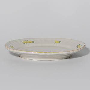 爽やかなレモンの絵柄がちりばめられたマーガレットリムの6寸皿。