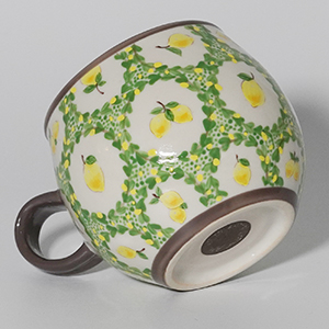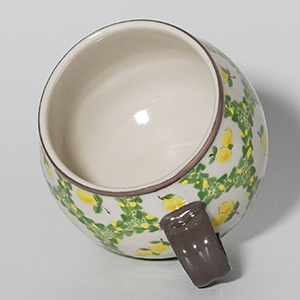 爽やかなレモン柄をリバティ調にちりばめたラテマグ。