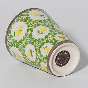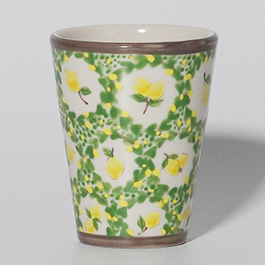 爽やかなレモン柄をリバティ調にちりばめた酒器。