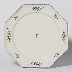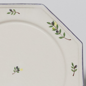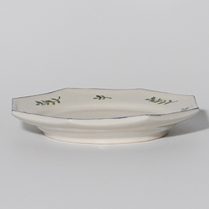 オリーブの枝葉が描かれた八角5寸皿。