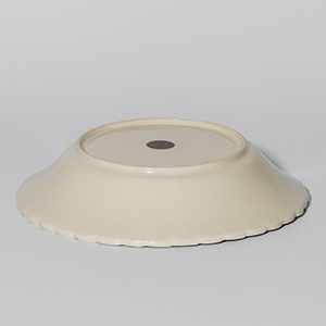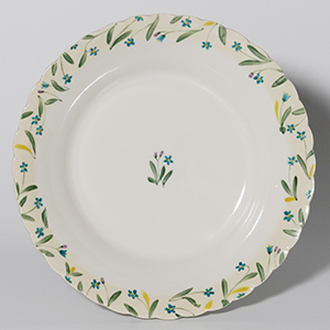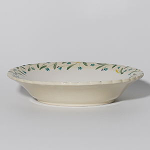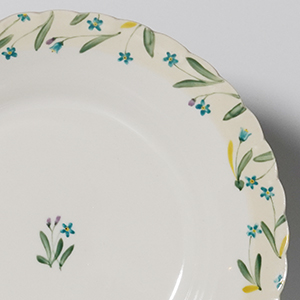 縁に勿忘草(わすれなぐさ)の模様が描かれた、やさしい雰囲気のスカラップ7寸深皿。