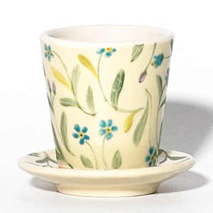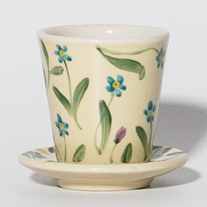 やさしく可憐な勿忘草(わすれなぐさ)の模様が描かれたとても小さな茶杯と茶托のセット。