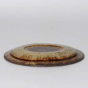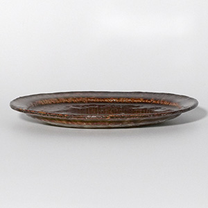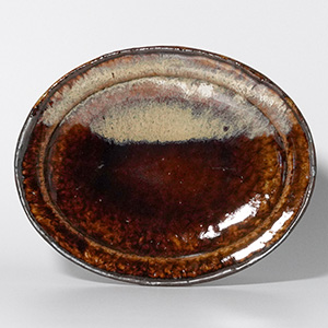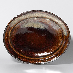 深みのある茶釉に白釉がやわらかく重なる、表情豊かなオーバルの銘々皿。