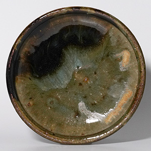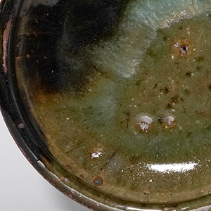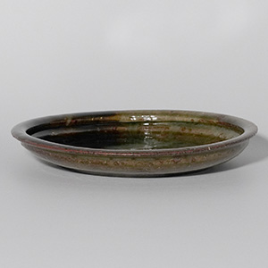 土灰釉と黒釉が溶け合う趣のある石皿です。