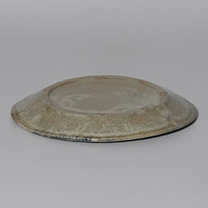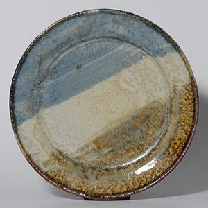 落ち着いた青と土味のある生成りがやわらかく溶け合う、二彩のリム皿。