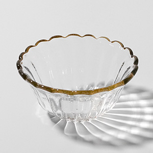 琥珀色の輪花の縁取りが素敵なアクセントになっています。
