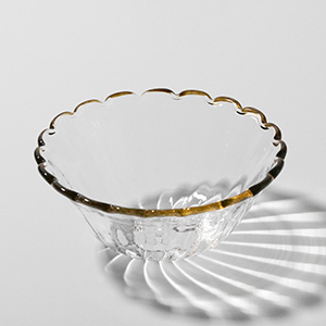 琥珀色の輪花の縁取りが素敵なアクセントになっています。