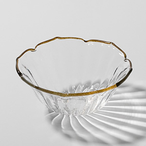 やわらかなモール模様や、花びらのように立ち上がる稜線が美しく、琥珀色の縁取りも素敵なアクセントになっています。