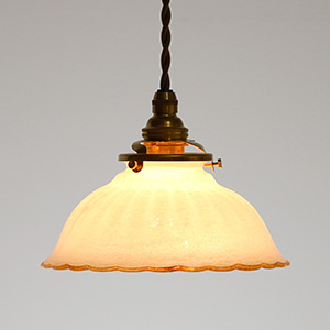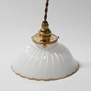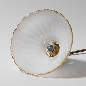 ふんわりと広がる乳白のガラスが、やわらかく光を透かすランプシェード。