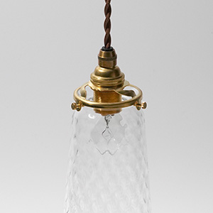 細やかなモールの凹凸模様を施した円錐形のランプシェード。