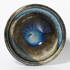 釉の重なりが生み出す奥行きのある表情が美しい青釉の小鉢。