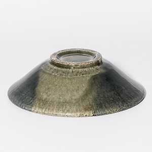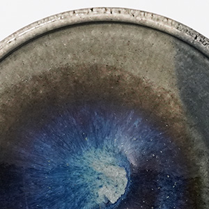釉の重なりが生み出す奥行きのある表情が美しい青釉の中鉢。
