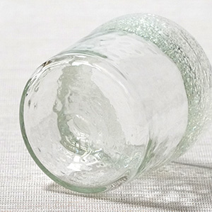 泡粒の縁取りがお洒落なデザインのロックグラス。