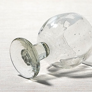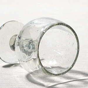 再生ガラスを使ったやわらかな表情の脚付きグラス。