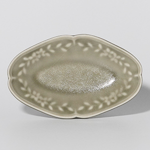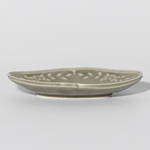 花冠を思わせるレリーフ模様が縁を彩るラヴィエ型の豆皿です。