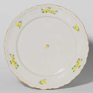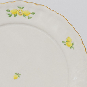 爽やかなレモンの絵柄がちりばめられたマーガレットリムの6寸皿。