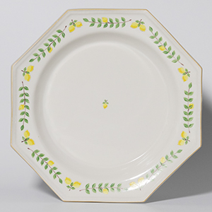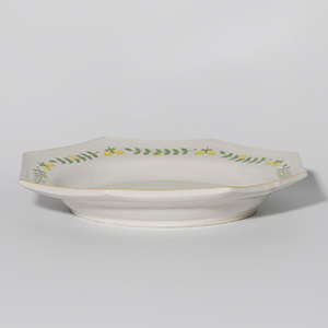 小さなレモン柄がぐるりと描かれた八角深皿。
