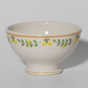 小さなレモン柄がぐるりと描かれた可愛らしいデザインのボウル。
