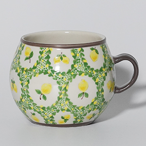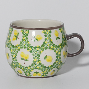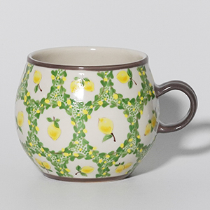 爽やかなレモン柄をリバティ調にちりばめたラテマグ。