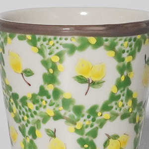 爽やかなレモン柄をリバティ調にちりばめた酒器。