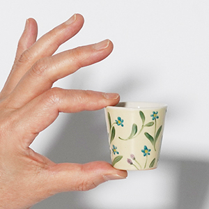 やさしく可憐な勿忘草(わすれなぐさ)の模様が描かれたとても小さな茶杯と茶托のセット。
