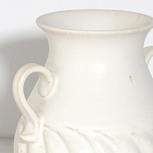 やわらかな白と手彫りの陰影が、静かに空間に寄り添う花器です。