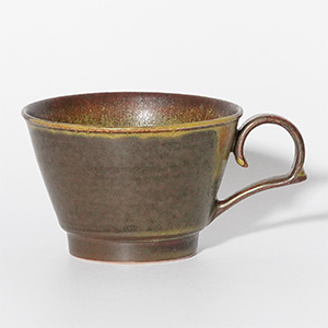 シックでクラシカルな雰囲気のモスブラウンのマグカップ。