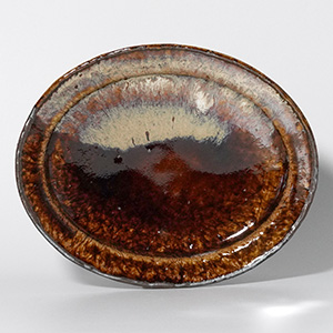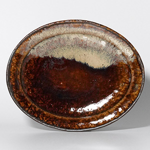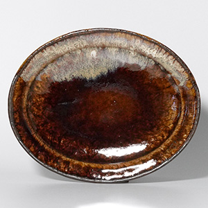 深みのある茶釉に白釉がやわらかく重なる、表情豊かなオーバルの銘々皿。