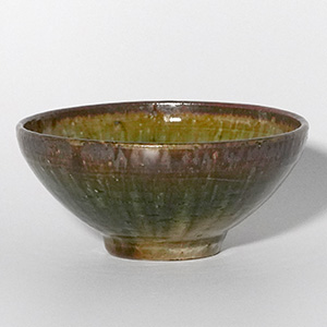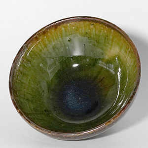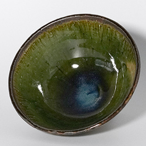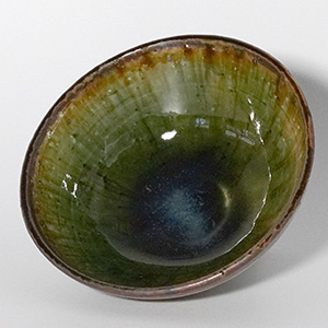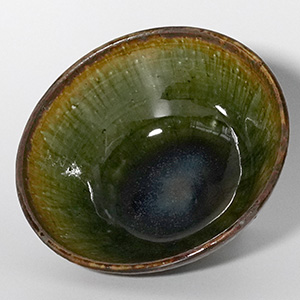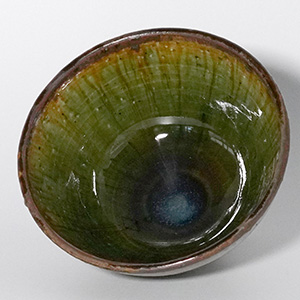 深みのある織部釉の表情が、日々の食卓に静かな存在感を添える飯碗。