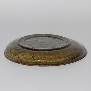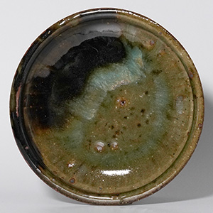 土灰釉と黒釉が溶け合う趣のある石皿です。