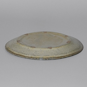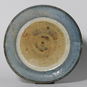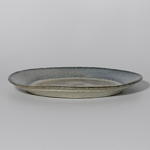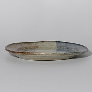 落ち着いた青と土味のある生成りがやわらかく溶け合う、二彩のリム皿。