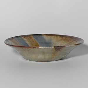 二つの釉色が自然に溶け合い、奥行きのある景色を生む二彩のリム鉢。