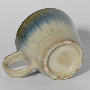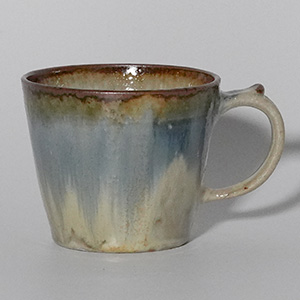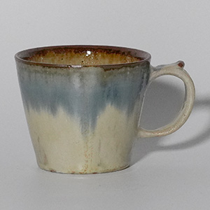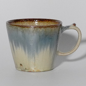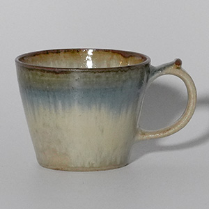 釉薬の掛け分けによって生まれる、やわらかな色の移ろいが魅力の二彩マグカップ。