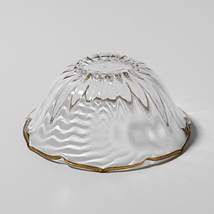 やわらかなモール模様や、花びらのように立ち上がる稜線が美しく、琥珀色の縁取りも素敵なアクセントになっています。