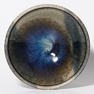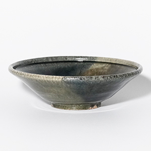 釉の重なりが生み出す奥行きのある表情が美しい青釉の中鉢。